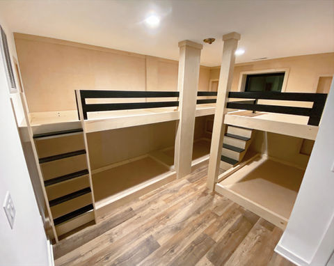 Our custom carpentry services deliver exceptional craftsmanship, whether you need shelving, cabinetry, bookcases, bunk beds, drop zones, or more. Each piece is meticulously tailored to your exact specifications, guaranteeing a perfect fit and flawless finish for any project.